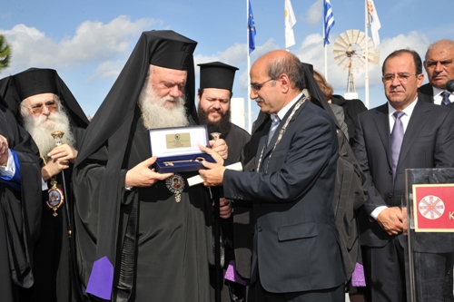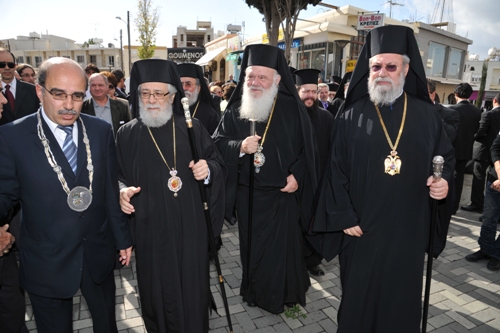Λαμπρή υποδοχή επεφύλαξε στον Αρχιεπίσκοπο Αθηνών και Πάσης Ελλάδος κ.κ. Ιερώνυμο ο Ποιμενάρχης, ο ιερός κλήρος, οι αρχές και ο ευσεβής λαός της Μητροπόλεως Κωνσταντίας και Αμμοχώστου στο Παραλίμνι. Η υποδοχή του Μακαριωτάτου έγινε στην πλατεία της Μητροπόλεως, πλησίον του Μητροπολιτικού Ναού του Αγίου Γεωργίου. Τον Μακαριώτατο καλωσόρισε ο Δήμαρχος Παραλιμνίου κ. Ανδρέας Ευαγγέλου και του προσέφερε το χρυσό κλειδί της πόλης. Ο Μακαριώτατος αντιφωνώντας ευχαρίστησε το Δήμαρχο και εξέφρασε τη χαρά και συγκίνησή του γιατί βρίσκεται στη μαρτυρική μεγαλόνησο και ειδικότερα στην ελεύθερη επαρχία της Αμμοχώστου.