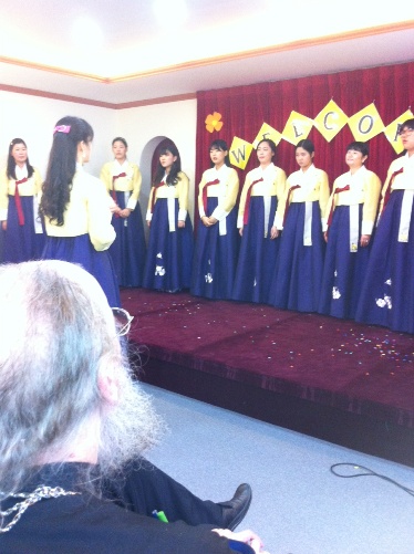 Στο τέλος της θείας Λειτουργίας, ο Σεβασμιώτατος Μητροπολίτης Κορέας κ. Αμβρόσιος, καλωσόρισε τα ορθόδοξα μέλη της Συνέλευσης και ευχήθηκε καλή συνέχεια και επιτυχία στις εργασίες της. Ο εκπρόσωπος του Παναγιοτάτου Οικουμενικού Πατριάρχου κ.κ. Βαρθολομαίου Σεβασμιότατος Μητροπολίτης Σασίμων κ. Γεννάδιος ανταπαντώντας, ευχαρίστησε εκ μέρους όλων τον Μητροπολίτη Κορέας και τους συνεργάτες του για την φιλοξενία και του πρόσφερε έναν ασημένιο θυμιατό.