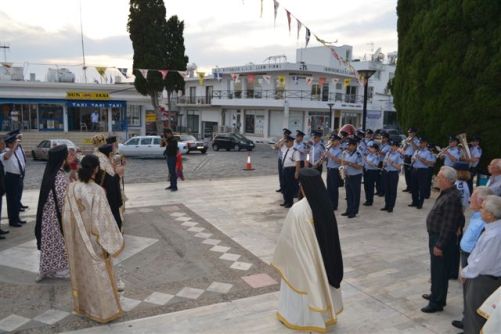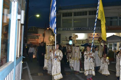 Πριν από την έναρξη του εσπερινού έγινε η υποδοχή της τιμίας κάρας του Αγίου Επιφανίου Αρχιεπισκόπου Κωνσταντίας του Μεγάλου, προστάτου και εφόρου της Μητροπόλεώς μας και των τιμίων λειψάνων της Αγίας μεγαλομάρτυρος Ειρήνης, τα οποία μεταφέρθηκαν από την Ιερά Βασιλική και Σταυροπηγιακή Μονή Κύκκου, κατόπιν άδειας και ευλογίας του Πανιερωτάτου Μητροπολίτου Κύκκου κ. Νικηφόρου. Στον εσπερινό παρέστησαν ο Αστυνομικός Διευθυντής Αμμοχώστου, οι Αξιωματικοί, οι Υπαξιωματικοί και τα Μέλη της Αστυνομικής Διεύθυνσης Αμμοχώστου. Μετά το τέλος του εσπερινού έγινε λιτανεία στους κεντρικούς δρόμους του Παραλιμνίου.