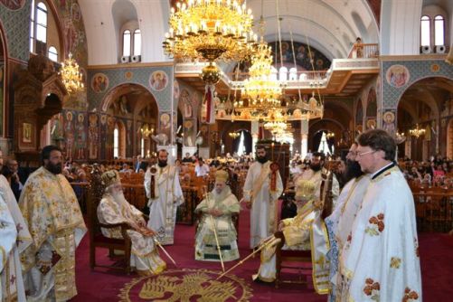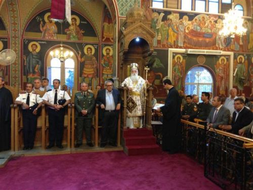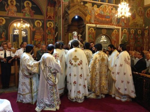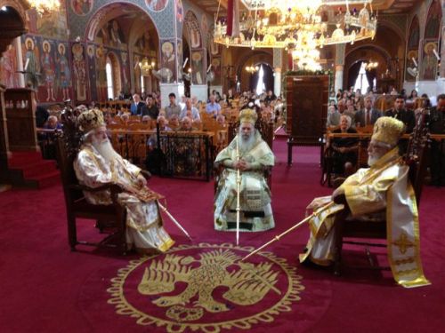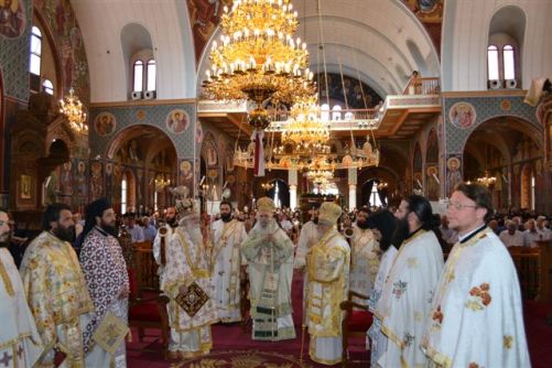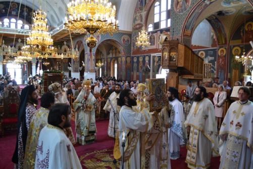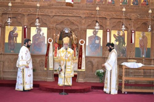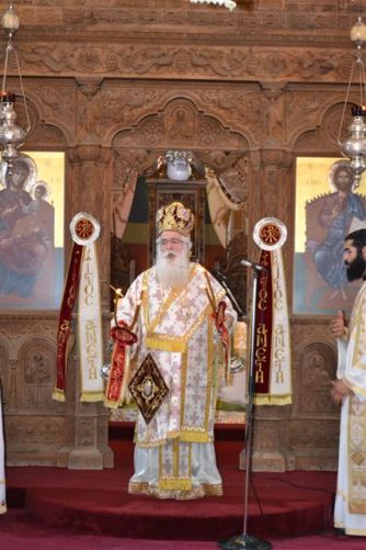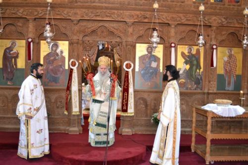 Την επομένη, κυριώνυμο ημέρα της εορτής τελέστηκε αρχιερατικό συλλείτουργο, προϊσταμένου του Σεβασμιωτάτου Αρχιεπισκόπου Θυατείρων και Μεγάλης Βρεττανίας κ. Γρηγορίου και συλλειτουργούντων των Σεβασμιωτάτου Μητροπολίτου Δημητριάδος και Αλμυρού κ. Ιγνατίου και Πανειρωτάτου Μητροπολίτου Κωνσταντίας κ. Βασιλείου. Ο Σεβασμιώτατος στο λόγο του, αφού ευχαρίστησε τον Πανιερώτατο Μητροπολίτη Κωνσταντίας κ. Βασίλειο για την πρόσκλησή του να λειτουργήσει κατά την ημέρα της πανηγύρεως του Μητροπολιτικού του Ναού, αναφέρθηκε στη ζωή και το μαρτύριο του Αγίου Γεωργίου.