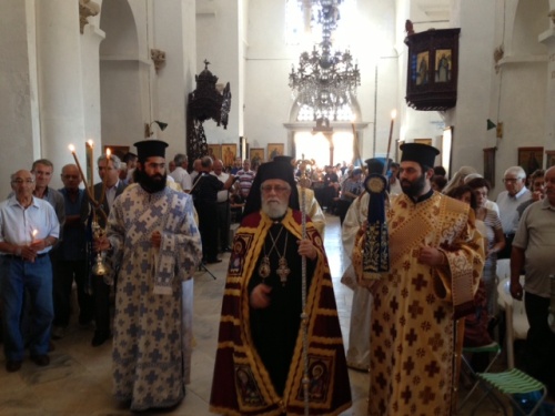 Αμέσως μετά την πανηγυρική Θεία Λειτουργία πραγματοποιήθηκε η λιτάνευση της στολισμένης με ποικίλα άνθη, ιεράς εικόνος του Αποστόλου Βαρνάβα, μέχρι το ναΐσκο που δεσπόζει πάνω από τον τάφο του αγίου.