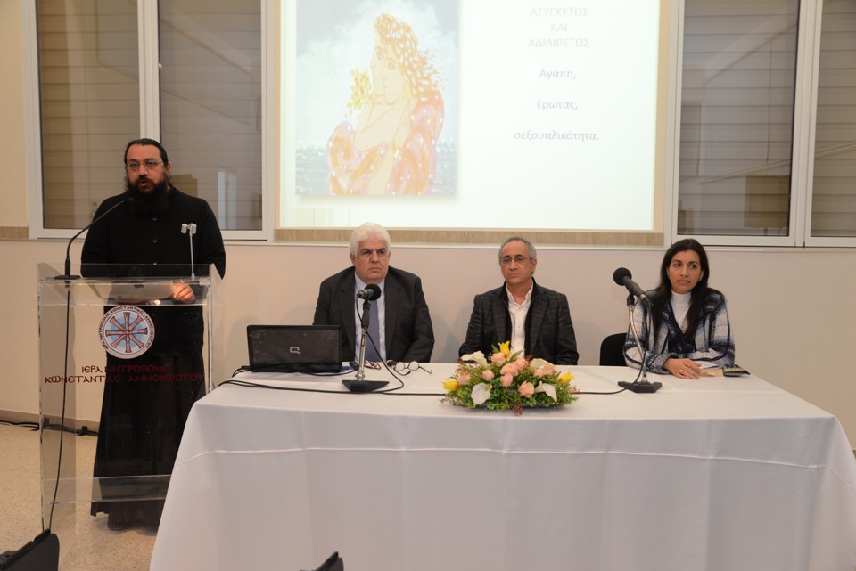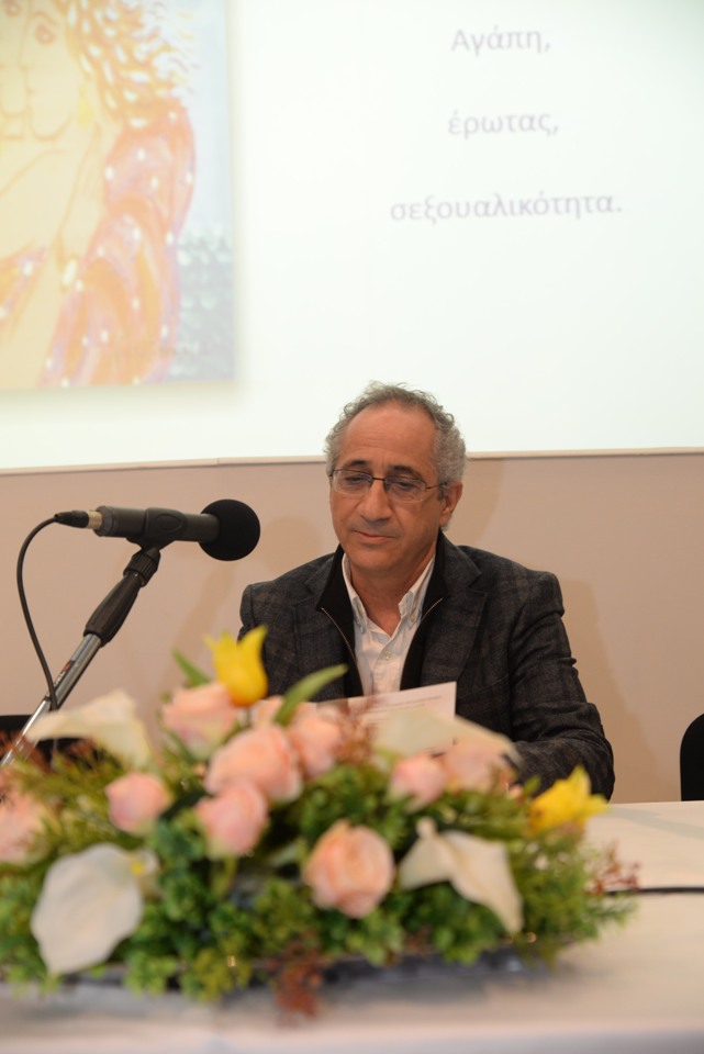 Οι δύο εισηγητές, ομίλησαν για το θέμα «Αγάπη-Έρωτας-Σεξουαλικότητα». Τον συντονισμό της διάλεξης είχε ο Δρ. Γεώργιος Κάκκουρας, επιθεωρητής ΕΜΕ Θρησκευτικών.