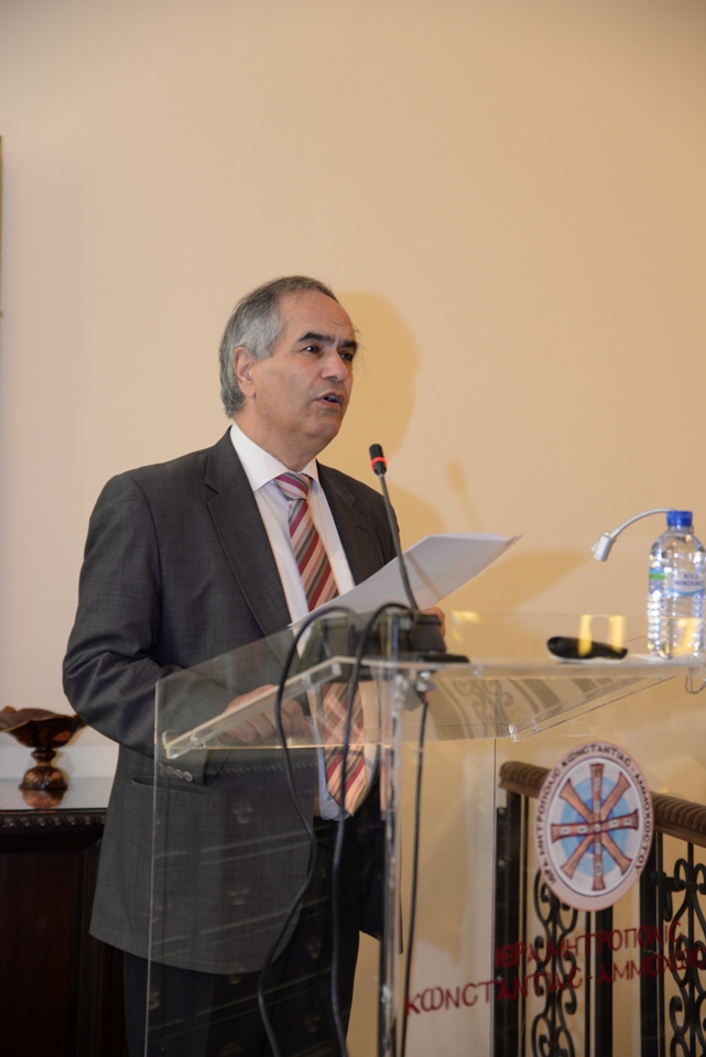 Τους παρισταμένους προσφώνησε ο καθ. Θεόδωρος Γιάγκου, Άρχων Διδάσκαλος της Εκκλησίας, οφικιαλούχος της Μ.Χ.Ε, ο οποίος αναφέρθηκε στη σειρά των Διεθνών Συνεδρίων Κυπριακής Αγιολογίας, τα οποία διοργανώνει κάθε δύο χρόνια η Ιερά Μητρόπολη Κωνσταντίας, στο πλαίσιο των επιστημονικών δραστηριοτήτων της Πολιτιστικής Ακαδημίας «Άγιος Επιφάνιος», με αφετηρία Α Διεθνές Συνέδριο που ήταν αφιερωμένο στον Άγιο Επιφάνιο Κωνσταντίας Πατήρ και Διδάσκαλο της Ορθοδόξου Καθολικής Εκκλησίας, που έλαβε χώρα το 2008. Κάνοντας ένα περιδιάβασμα των εργασιών αυτών των συνεδρίων σημείωσε ότι, διαπιστώνετε εύκολα ότι οι περισσότερες εισηγήσεις ήταν υψηλού επιπέδου, με πρωτοποριακή συμβολή στη μελέτη της αγιολογικής παράδοσης της Νήσου και κατ’ επέκταση στην ιστορία της Εκκλησίας της Κύπρου. Εξέφρασε επίσης την ευαρέσκεια της Οργανωτικής και Επιστημονικής Επιτροπής για το συντελεσθέν επιστημονικό έργο αλλά και πάνω απ’ όλα την ευγνωμοσύνη προς όλους τους συναδέλφους, που με μεγάλη φιλοτιμία πάντοτε ερευνούν τις πηγές και προσφέρουν κάτι σημαντικό. Σε μία εποχή που η πνευματική παρακμή έχει αυξανόμενη τάση, κατέληξε, τα συνέδρια αυτά μπορούν να δικαιώσουν το λόγο του ποιητή ότι «κάνουν ένα βήμα γρηγορότερο από τη φθορά».