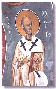 Από το 15ο αιώνα, έχουμε μια τοιχογραφία του Λαζάρου από τον μεσαιωνικό ναό του Αγίου Ανδρονίκου Λιοπετρίου [φωτ. 4]. Ο Άγιος αποδίδεται με κοντό ανεπαίσθητο υπογένιο.