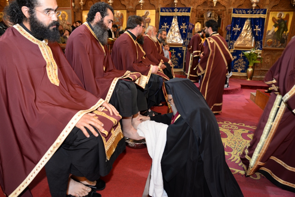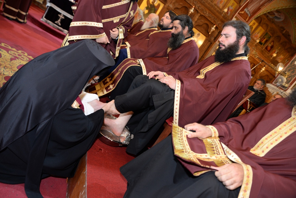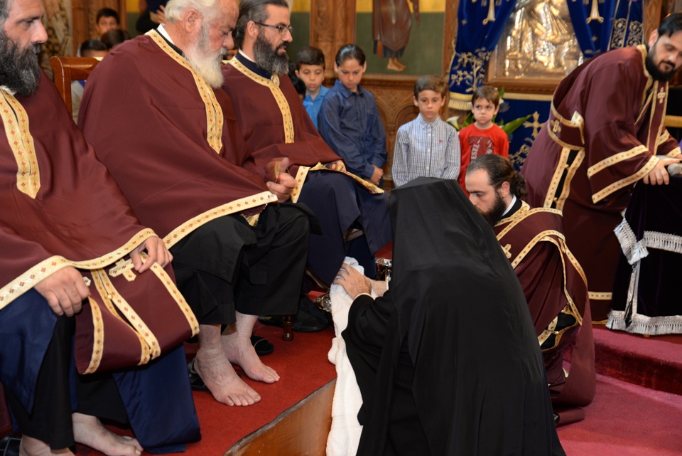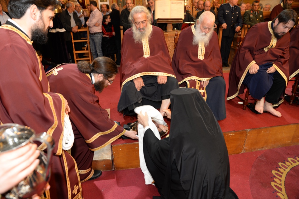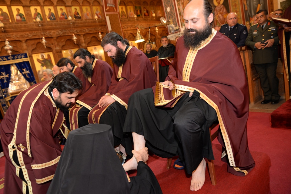 Ο Πανιερώτατος Μητροπολίτης Κωνσταντίας και Αμμοχώστου κ. Βασίλειος, χοροστάτησε της ακολουθίας στον Μητροπολιτικό Ναό του Αγίου Γεωργίου στο Παραλίμνι. Στην συνέχεια στον ειδικά διαμορφωμένο σολέα του ναού ο Πανιερώτατος μέσα στα πλαίσια μίας σεμνής, ταπεινής, συμβολικής και άκρως διδακτικής τελετής, έπλυνε τα πόδια 12 Ιερέων, μιμούμενος τον Κύριο ημών Ιησού Χριστό, ο οποίος πριν από το Μυστικό Δείπνο ένιψε τα πόδια των μαθητών Του.