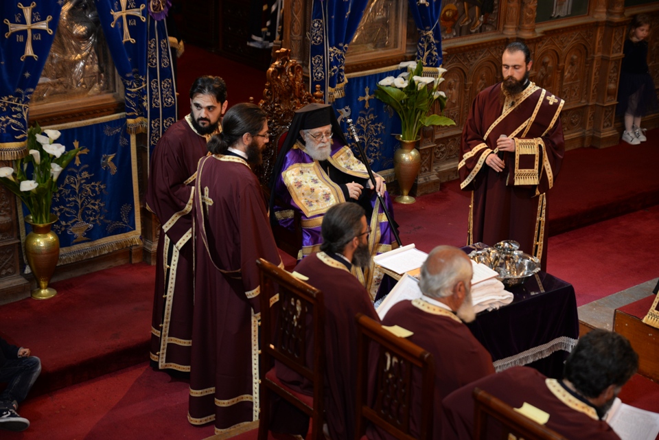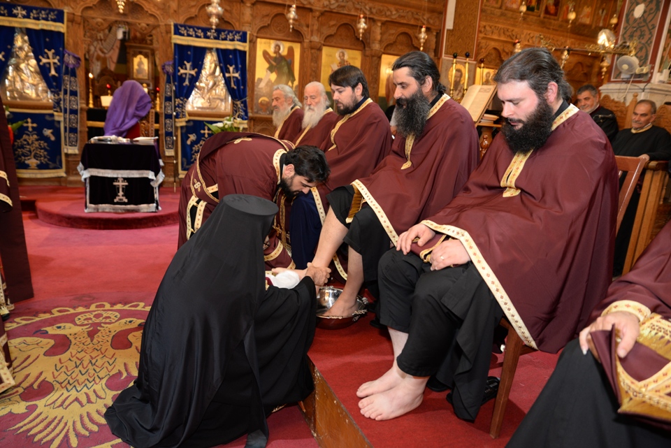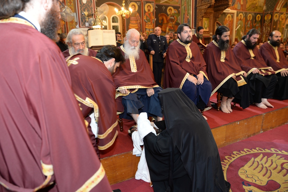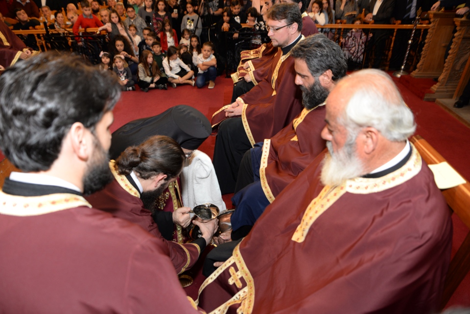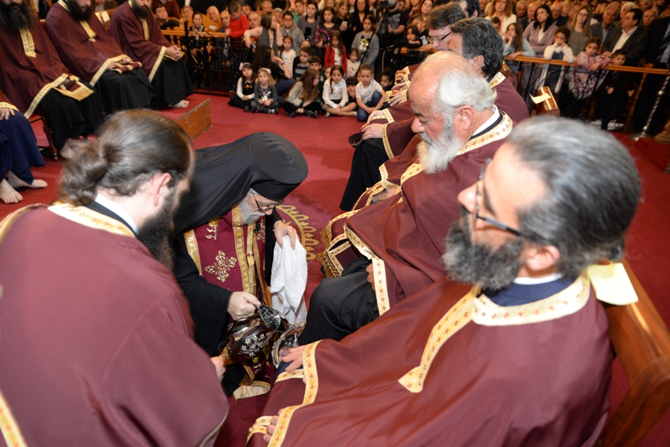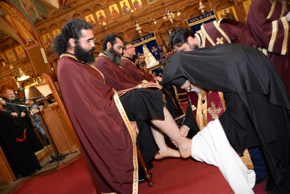 Ο Πανιερώτατος Μητροπολίτης Κωνσταντίας και Αμμοχώστου κ. Βασίλειος, χοροστάτησε της ακολουθίας στον Μητροπολιτικό Ναό του Αγίου Γεωργίου στο Παραλίμνι. Στην συνέχεια στον ειδικά διαμορφωμένο σολέα του ναού ο Πανιερώτατος μέσα στα πλαίσια μίας σεμνής, ταπεινής, συμβολικής και άκρως διδακτικής τελετής, έπλυνε τα πόδια 12 Ιερέων, μιμούμενος τον Κύριο ημών Ιησού Χριστό, ο οποίος πριν από το Μυστικό Δείπνο ένιψε τα πόδια των μαθητών Του.