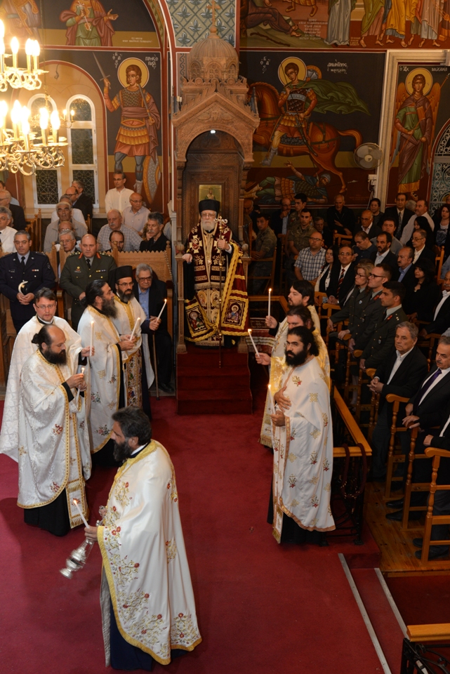 Με θρησκευτική κατάνυξη και μέσα σε πανηγυρική ατμόσφαιρα τελέσθηκε και εφέτος το απόγευμα της Κυριακής 22 Απριλίου 2018 ο πανηγυρικός Εσπερινός της μνήμης του Αγίου Μεγαλομάρτυρος Γεωργίου του Τροπαιοφόρου, στον ομώνυμο Μητροπολιτικό Ναό του Αγίου Γεωργίου στην καρδιά της πόλεως του Παραλιμνίου. Της εσπερινής ακολουθίας χοροστάτησε ο επιχώριος Μητροπολίτης Κωνσταντίας και Αμμοχώστου κ. Βασίλειος, πλαισιούμενος από τον πρωτοσύγκελλο της Ιεράς Μητροπόλεως Αρχιμ. Αυγουστίνο Κκαρά, τους εφημερίους του ναού και των όμορων ενοριών του Αγίου Δημητρίου και Αγίας Βαρβάρας και διακόνους της Μητροπόλεως.
