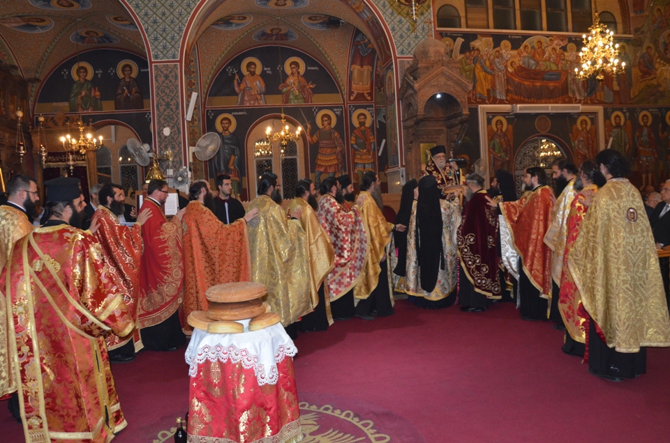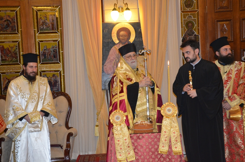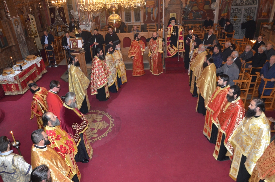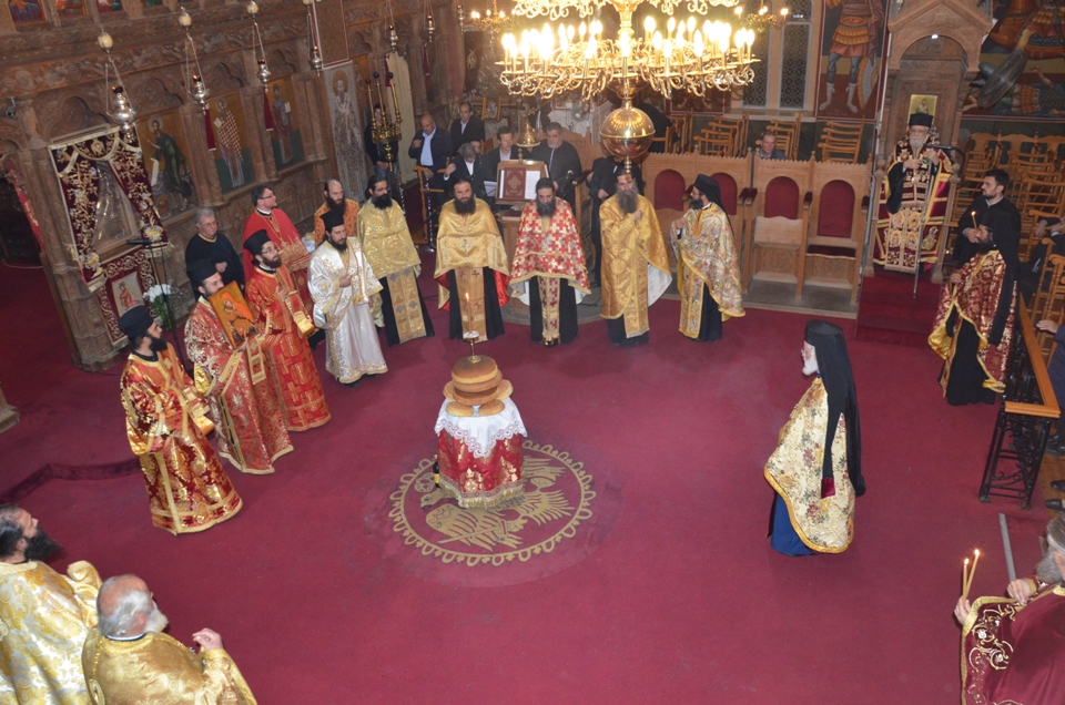 Ακολούθως εψάλλη ο πολυχρονισμός του εορτάζοντος Μητροπολίτη ο οποίος δέχθηκε τις ευχές του ιερού κλήρου και των πιστών.