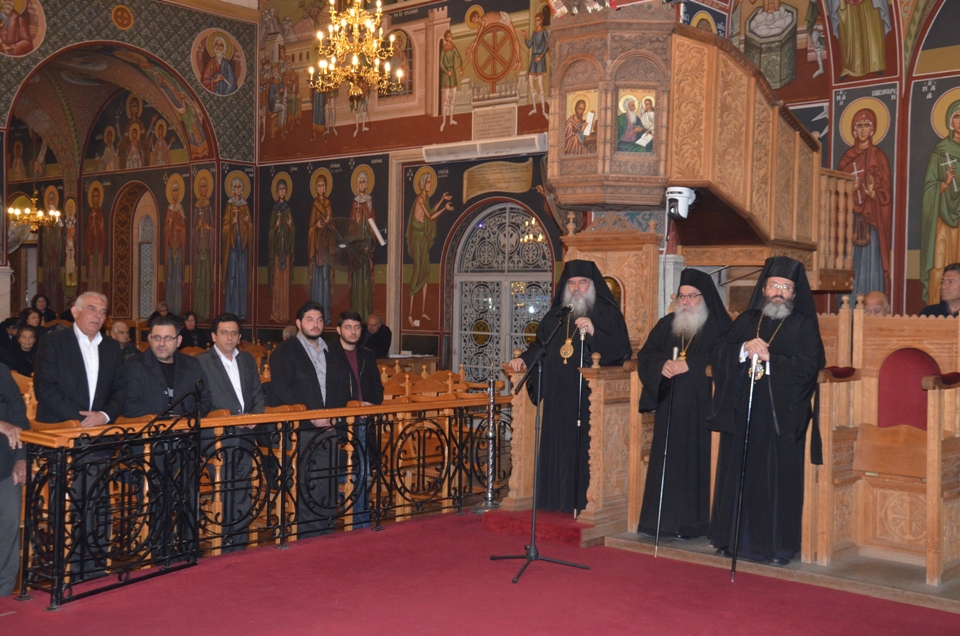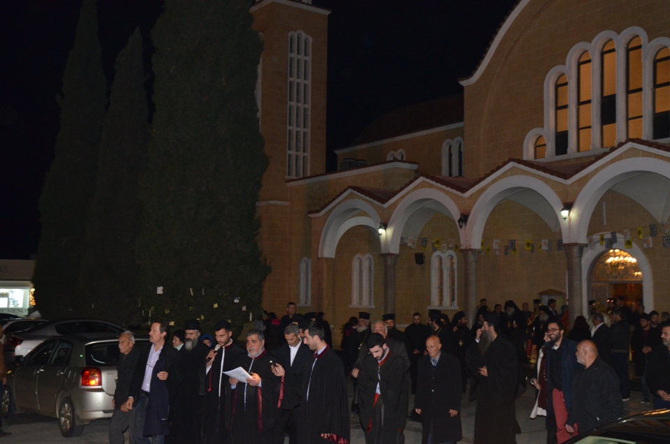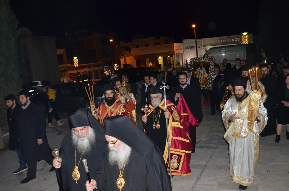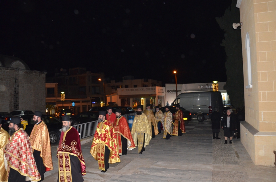 Τελέστηκε το απόγευμα του Σαββάτου 31 Δεκεμβρίου 2016, στον Μητροπολιτικό Ναό Αγίου Γεωργίου στο Παραλίμνι, ο Μέγας Εσπερινός της εορτής της Περιτομής του Κυρίου και της μνήμης του Μεγάλου Βασιλείου, χοροστατούντος του εορτάζοντος Μητροπολίτη κ. Βασιλείου και συγχοροστατούντων των Πανιερωτάτων Μητροπολιτών Λεμεσού κ. Αθανασίου, Τριμυθούντος κ. Βαρνάβα και του Θεοφιλεστάτου Επισκόπου Μεσαορίας κ. Γρηγορίου με τη συμμετοχή αρκετών ιερέων και των διακόνων της Μητροπόλεως.