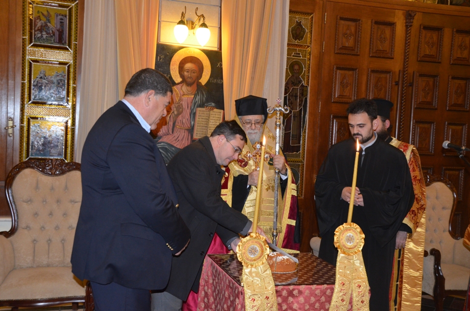 Μετά το πέρας της ακολουθίας σχηματίστηκε πομπή προς το Συνοδικό της Μητροπόλεως όπου ο Πανιερώτατος ευλόγησε την καθιερωμένη βασιλόπιτα.