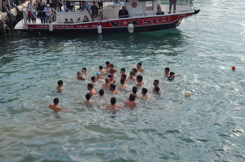 Την τελετή καθαγιασμού των υδάτων η οποία μεταδόθηκε ζωντανά από το διαδίκτυο παρακολούθησαν εκατοντάδες πιστοί οι οποίοι είχαν από νωρίς λάβει θέσεις σε διάφορα σημεία γύρω από την εξέδρα.
