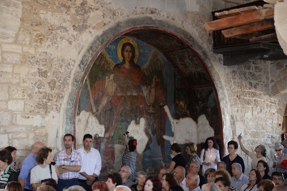 Ο ναός αυτός, που συγκεντρώνει την ιστορία αιώνων, πολλών ανθρώπων και πολιτισμών, με τον προστάτη του Αρχάγγελο Μιχαήλ να δεσπόζει επιβλητικά στο νότιο κλίτος, διασώθηκε από την καταστροφή και παραδόθηκε επίσημα τον Οκτώβριο του προηγούμενου έτους, μετά την ολοκλήρωση των εργασιών συντήρησης και ανάδειξης τις οποίες πραγματοποίησε η Τεχνική Επιτροπή για την Πολιτιστική Κληρονομιά.