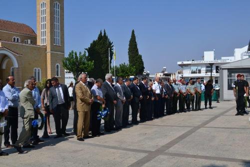 Την Κυβέρνηση εκπροσώπησε ο έντιμος Υπουργός Εμπορίου, Βιομηχανίας και Τουρισμού κ. Γεώργιος Λακκοτρύπης, ο οποίος εκφώνησε τον επιμνημόσυνο λόγο στην παρουσία των Δημοτικών Αρχών, Βουλευτών, Στρατιωτικών και Αστυνομικών αρχών.