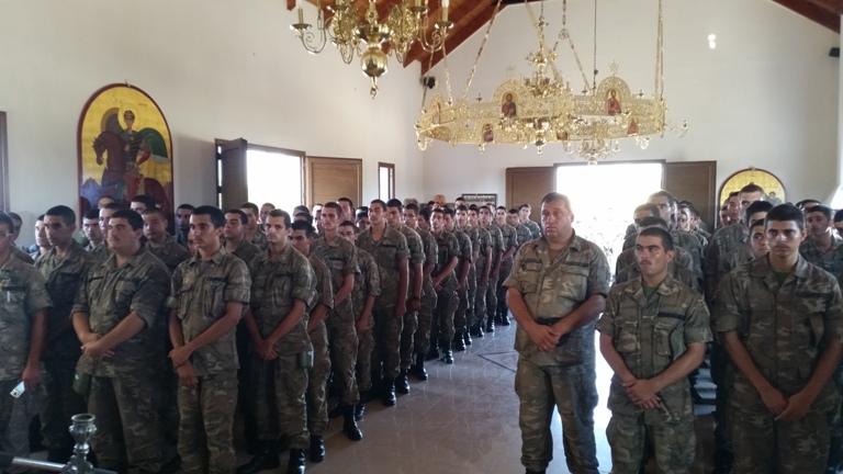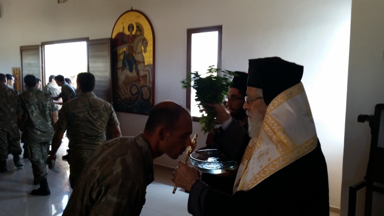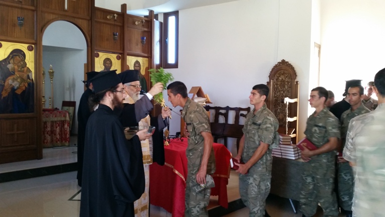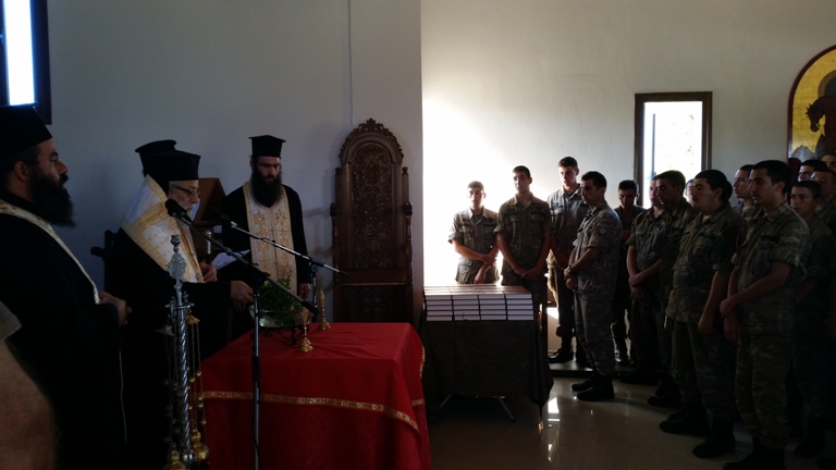 Σήμερα, Παρασκευή 8 Αυγούστου 2014, ο Πανιερώτατος Μητροπολίτης Κωνσταντίας και Αμμοχώστου κ. Βασίλειος, συμπαραστατούμενος από τον Πρωτοσύγκελο Αρχιμανδρίτη Αυγουστίνο, τον πρεσβύτερο π. Ειρηναίο και τους διακόνους Επιφάνιο και Κωνσταντίνο, τέλεσε αγιασμό στο Στρατόπεδο Δημητράκη Χριστοδούλου, με την ευκαιρία της κατάταξης νεοεισαχθέντων οπλιτών στα στρατόπεδα και στα φυλάκια της μητροπολιτικής μας περιφέρειας.