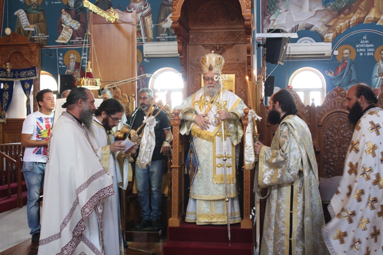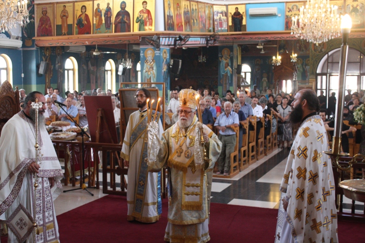 Τη Παρασκευή το πρωί, κυριώνυμο ημέρα της εορτής της Κοιμήσεως της Θεοτόκου ο Πανιερώτατος χοροστάτησε στον Όρθρο και προεξήρχε της Θείας Λειτουργίας στο πανηγυρίζοντα ιερό ναό Παναγίας Ελεούσης στο Λιοπέτρι.