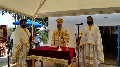 Της Ευχαριστιακής Συνάξεως προέστη ο ομοχώριος τους Μητροπολίτης Κωνσταντίας και Αμμοχώστου κ. Βασίλειος, ο οποίος στο κήρυγμά του επεσήμανε ότι «σήμερα τιμούμε τον Άγιο προστάτη της κοινότητας μας και του αποθέτουμε τις προσευχές και τις ελπίδες μας ώστε να βοηθήσει να επιστρέψουμε στο χωριό μας και να τον τιμήσουμε και εκεί. Καταθέτουμε επίσης λίγα λουλούδια στο μνημείο των ηρωικών νεκρών για να τιμήσουμε τη θυσία τους και για να διατηρήσουμε άσβεστη τη μνήμη τους και τον πόθο της επιστροφής μας στον τόπο εκείνο που τόσο πολύ αγαπήσαμε και τόσο πολύ χάραξε την ύπαρξη μας».