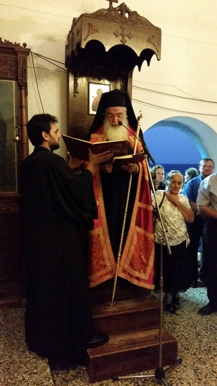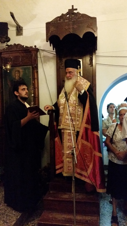Την παραμονή της εορτής τελέστηκε ο Μέγας Πανηγυρικός Αρχιερατικός Εσπερινός χοροστατούντος του Κύπριου στην καταγωγή Σεβασμιώτατου Μητροπολίτου Κένυας κ. Μακαρίου, ο οποίος αυτές τις μέρες βρίσκεται στο νησί, και ο οποίος αποτελεί «έναν σύγχρονο ιεραπόστολο που κηρύττει την Ορθοδοξία στους μαύρους αδελφούς μας εκεί στην Αφρικανική Ήπειρο» όπως χαρακτηριστικά τόνισε ο γηραιός λευίτης Πρωτοπρεσβύτερος Γεώργιος Ιωάννου στο καλωσόρισμα του προς το προσκεκλημένο αρχιερέα.