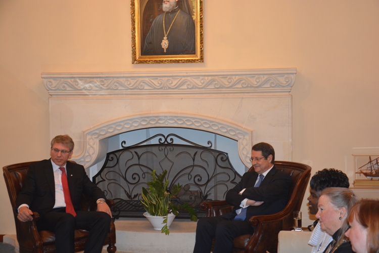 Το πρωί της Τρίτης 25 Νοεμβρίου, το προεδρείο της Εκτελεστικής Επιτροπής του Π.Σ.Ε, συνοδευόμενο από τον Πανιερώτατο Μητροπολίτη Κωνσταντίας κ. Βασίλειο, επισκέφθηκε το προεδρικό μέγαρο όπου είχε κατ’ ιδίαν συνάντηση με τον πρόεδρο Αναστασιάδη. Η συνάντηση διεξήχθη σε θερμό κλίμα και διήρκησε μισή ώρα. Ο Πρόεδρος είχε την ευκαιρία να ενημερώσει τους συνομιλητές του για τις τελευταίες εξελίξεις στο εθνικό θέμα, και τις Τουρκικές προκλήσεις στην περιοχή. Από την πλευρά τους τα μέλη του Π.Σ.Ε, εξέφρασαν την στήριξη τους στις προσπάθειες της Κυπριακής πολιτείας για την εξεύρεση δίκαιης και βιώσιμης λύσης για την ευημερία των πολιτών ολόκληρης της Κύπρου.