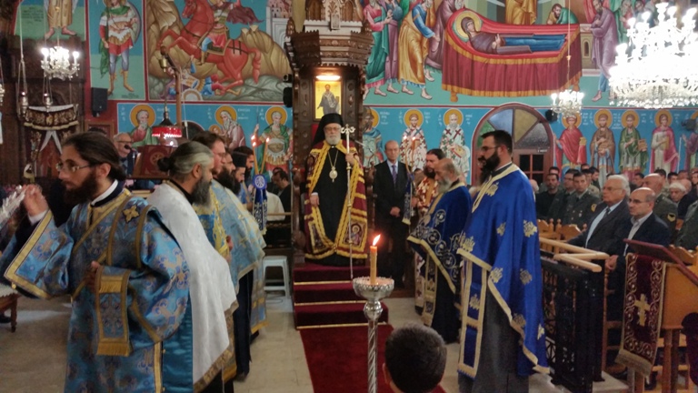 Την Τετάρτη 3 Δεκεμβρίου, παραμονή της εορτής, ο Πανιερώτατος Μητροπολίτης Κωνσταντίας- Αμμοχώστου κ. Βασίλειος, χοροστάτησε κατά την ακολουθία του Πανηγυρικού Εσπερινού. Συμμετείχαν ο Πρωτοσύγκελος Αρχιμανδρίτης Αυγουστίνος και αρκετοί ιερείς της Μητροπόλεως, στην παρουσία τοπικών αρχών, εκπροσώπων του στρατού της αστυνομίας και πλήθος κόσμου. Τους ύμνους απέδωσαν άριστα ο Πρωτοψάλτης του ναού Χρήστος Ψάλτης ως χοράρχης στο δεξιό αναλόγιο και από το αριστερό αναλόγιο ο Πρωτοψάλτης του Ιερού Καθεδρικού Ναού Αγίου Ιωάννου του Θεολόγου στη Λευκωσία, Κυριάκος Ψάλτης (υιός του κ. Χρήστου), όπου με τη ψαλμωδία τους μετέδωσαν πνεύμα προσευχής και κατανύξεως στους πιστούς.