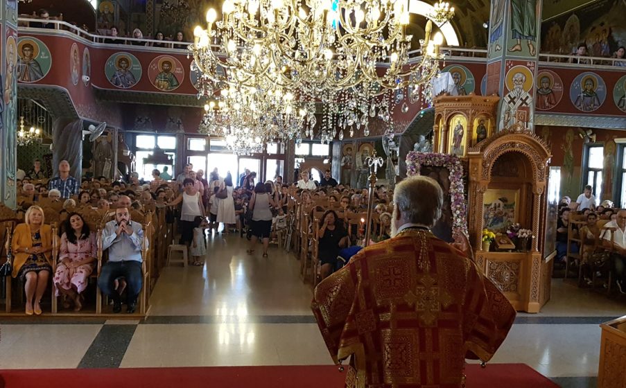 Στον πανηγυρίζοντα ενοριακό Ιερό Ναό Παναγίας στην Αγία Νάπα, λειτούργησε σήμερα ο Πανιερώτατος Μητροπολίτης Κωνσταντίας και Αμμοχώστου κ. Βασίλειος.