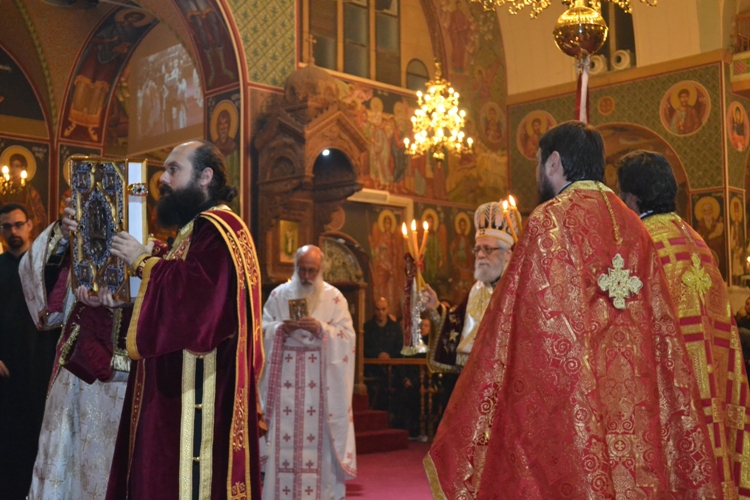 Περί την ενδεκάτη πρωινή τελέστηκε στο Μέγα Συνοδικό της Μητροπόλεως η ακολουθία της εννάτης ώρας του Πάσχα, κατά την οποία ο Επίσκοπος ενδύθηκε τα Αρχιερατικά του Άμφια. Κατόπιν σχηματίστηκε πομπή προς τον Μητροπολιτικό Ναό για τον Εσπερινό της Αγάπης. Κατά τη διάρκεια της ακολουθίας ο Πανιερώτατος και κληρικοί της Μητροπόλεως ανέγνωσαν την Ευαγγελική περικοπή από το κατά Ιωάννη Ευαγγέλιο σε 11 γλώσσες, την Ελληνική, την Λατινική, την Σουαχίλι, την Γαλλική, την Αραβική, την Ομηρική, την Αγγλική, την Ρουμανική, την Γερμανική την Σλαβική και Αλβανική.