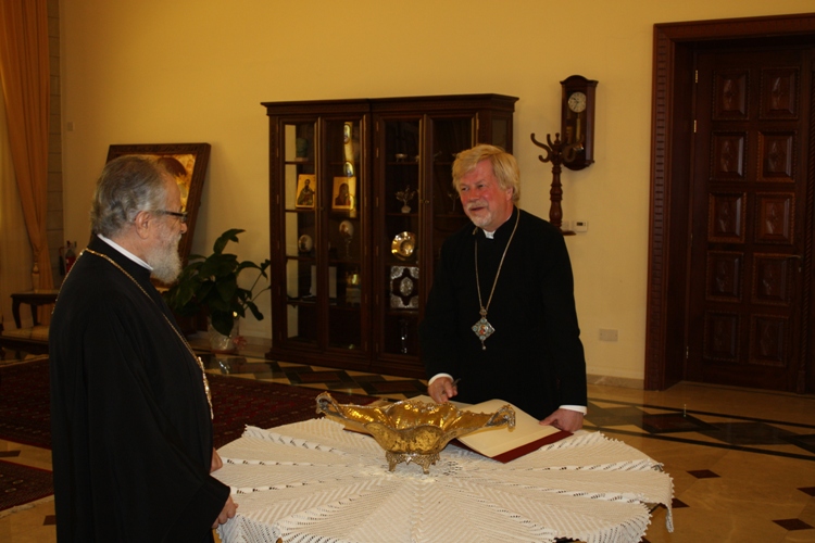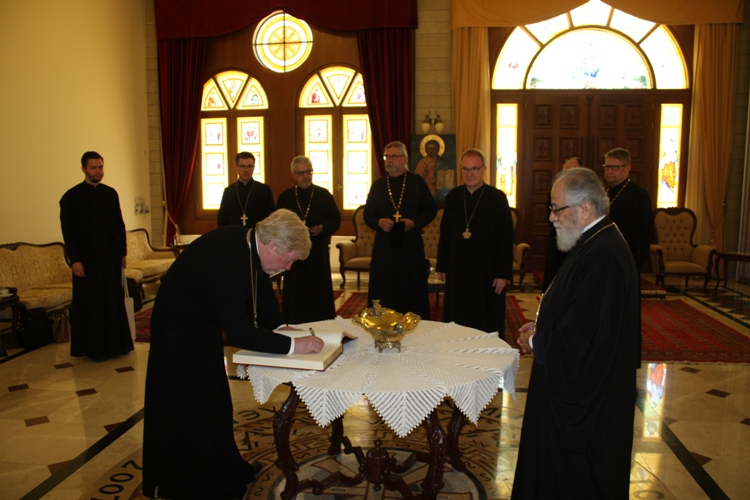 Ο Πανιερώτατος αφού καλωσόρισε τους υψηλούς επισκέπτες στην Ιερά Μητρόπολη Κωνσταντίας, αναφέρθηκε κατόπιν με συντομία στην ιστορία της Μητροπόλεως. Οι παρευρισκόμενοι είχαν την ευκαιρία να συζητήσουν για αρκετή ώρα γύρω από διάφορα και επίκαιρα θέματα. Η επίσκεψη έκλεισε με ανταλλαγή αναμνηστικών δώρων.