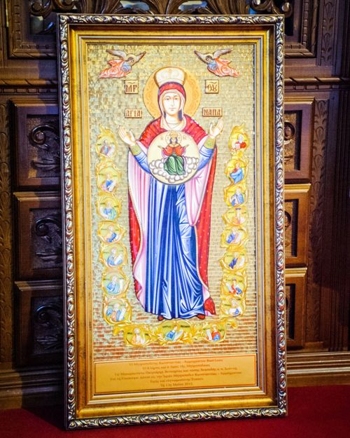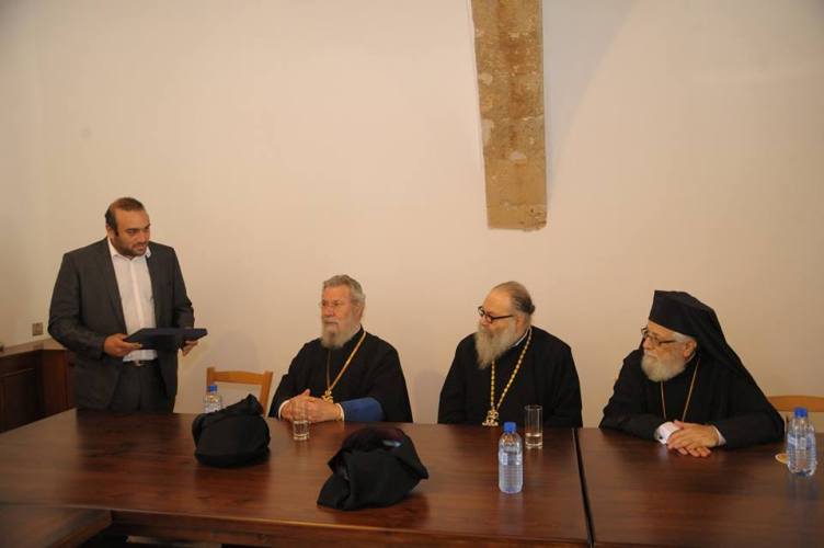 Τέλος δώρισε στον Μακαριώτατο Πατριάρχη μια εικόνα αντίγραφο της Παναγίας Αγίας Νάπας, η οποία φιλοτεχνήθηκε πάνω σε γυαλί ειδικά για την σημερινή ημέρα.