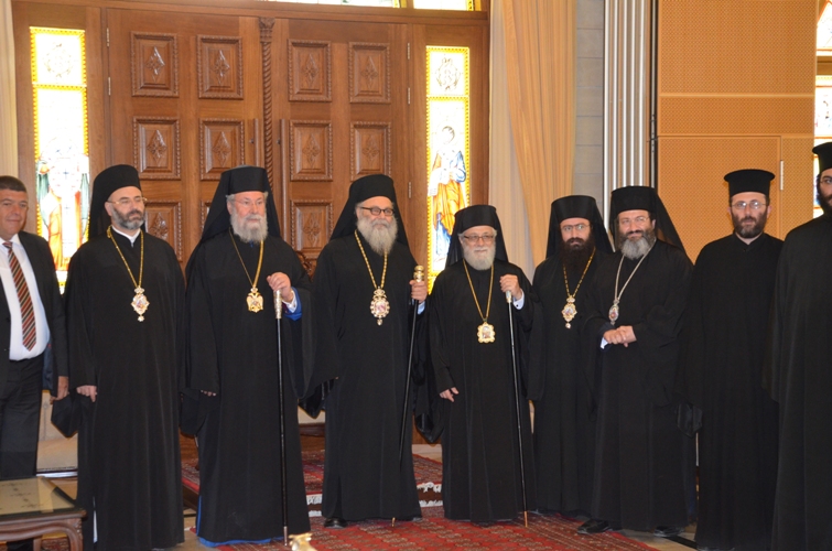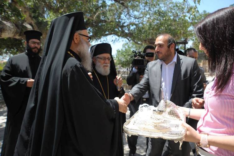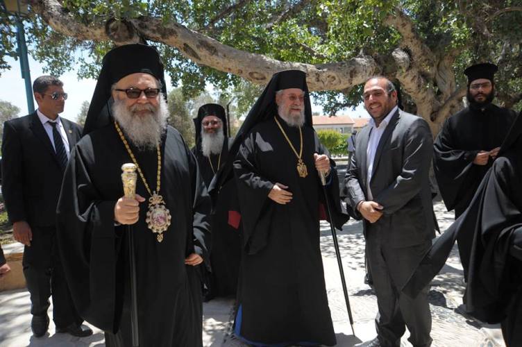 Λυπούμαστε όμως ανθρωπίνως Μακαριώτατε και μαζί με εμάς και ο Αρχιεπίσκοπος Κύπρου, που δεν μπορούμε να σας υποδεχθούμε στην φυσική έδρα της Μητροπόλεως και να σας ξεναγήσουμε στην Μονή του ιδρυτή της Εκκλησίας μας Αποστόλου Βαρνάβα και στην μεγαλοπρεπή βασιλική του Αγίου Επιφανίου στην Σαλαμίνα. Ευχηθείτε Μακαριώτατε «να έλθει σύντομα αυτή η άγια ώρα της ελευθερίας και της επιστροφής μας στη πατρώα γη» τόνισε χαρακτηριστικά.