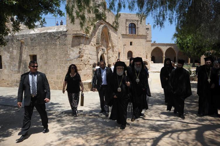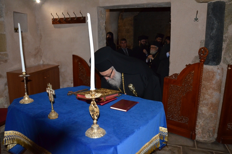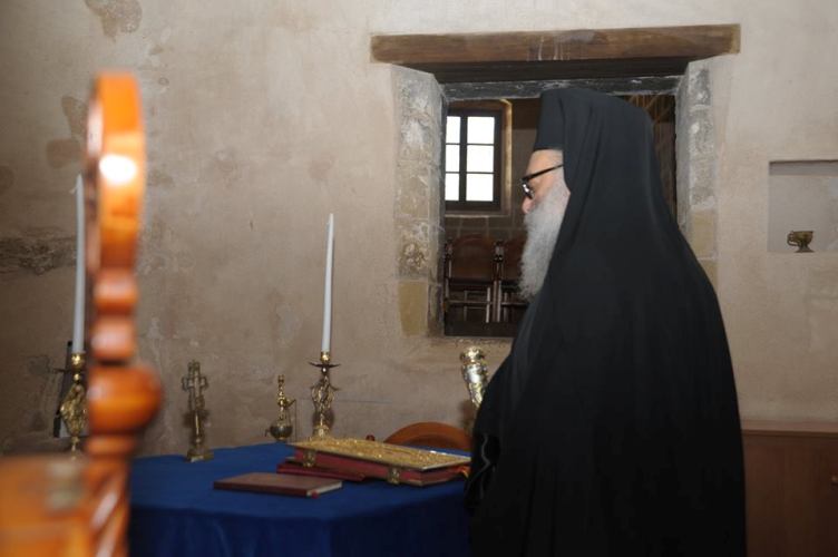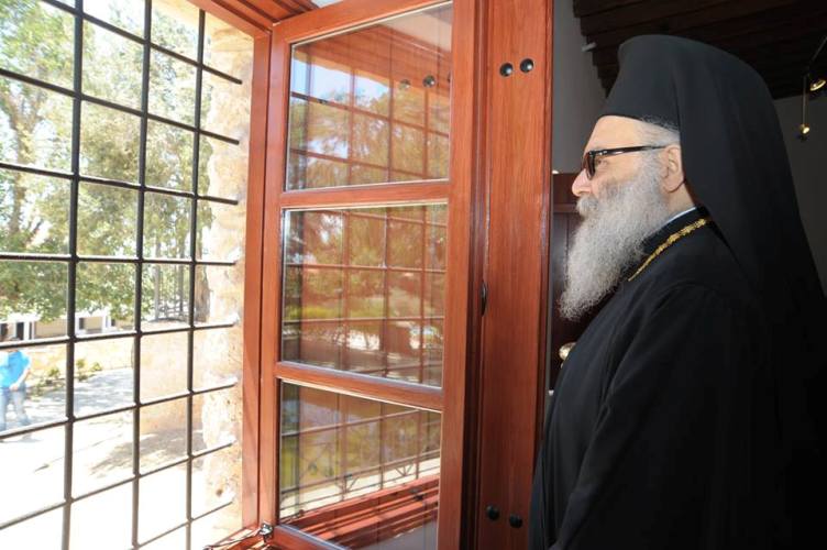 Ο Μακαριώτατος προσκύνησε το αντίγραφο της ιεράς εικόνας και ασπάστηκε το ιερό Ευαγγέλιο. Ακολούθως στην παραπλήσια αναικαινισμένη αίθουσα, ο Πανιερώτατος είχε την ευκαιρία ν αναφερθεί στην ιστορία της Μονής και στο πως θ αξιοποιηθεί ο χώρος αυτός στο εγγύς μέλλον. Αξίζει ν’ αναφερθεί ότι στην εν λόγω Μονή έχει την έδρα της η Πολιτιστική Ακαδημία «Άγιος Επιφάνιος» και όπου σύντομα θα λειτουργήσει Μουσείο και Ινστιτούτο Μεταπτυχιακών Σπουδών.