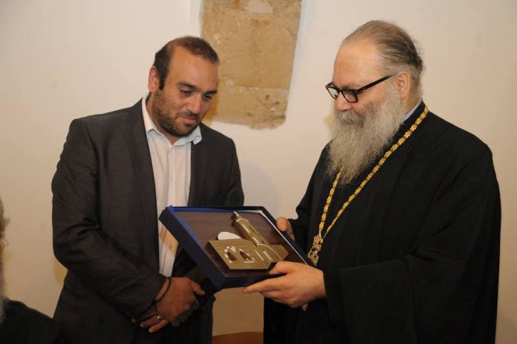 Ο Δήμαρχος Αγίας Νάπας κ. Γιάννης Καρούσος, καλωσόρισε με την σειρά του Πατριάρχη Αντιόχειας, εκφράζοντας την χαρά του και τις θερμές ευχαριστίες όλων των Δημοτών για την επίσκεψη του στην πόλη της Αγίας Νάπας, παραδίδοντας του το κλειδί της πόλης και αναμνηστική πλακέτα, στην οποία απεικονίζεται το Μεσαιωνικό Μοναστήρι.