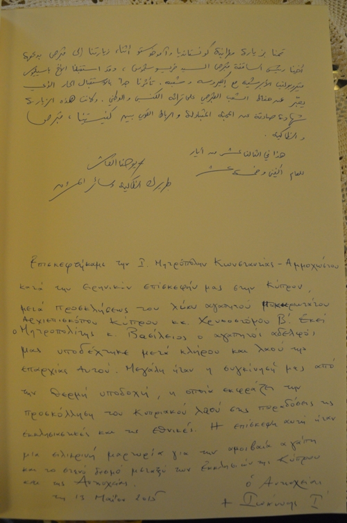 Η επίσκεψη της Α.Θ. Μακαριότητος του Πατριάρχη Αντιοχείας και πάσης Αραβίας κ.κ Ιωάννου στην Ιερά Μητρόπολη Κωνσταντίας-Αμμοχώστου, εκτός από ιστορικό γεγονός για την τοπική Εκκλησία αποτελεί «μια ειλικρινή μαρτυρία για την αμοιβαία αγάπη και τον στενό δεσμό μεταξύ των Εκκλησιών της Κύπρου και της Αντιόχειας» όπως έγραψε χαρακτηριστικά στο βιβλίο επισκεπτών.