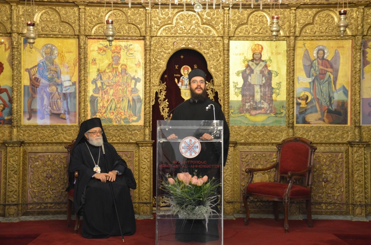 Προηγήθηκε η ακολουθία του Εσπερινού, στην οποία χοροστάτησε ο Μητροπολίτης Κωνσταντίας-Αμμοχώστου κ. Βασίλειος. Στην συνέχεια ο Πανιερώτατος καλωσόρισε τους παρευρισκόμενους και τον ομιλητή, ευχαριστώντας ταυτόχρονα τον Σεβασμιώτατο Αρχιεπίσκοπο Ιασίου και Μητροπολίτη Μολδαβίας και Μπουκοβίνης κ. Θεοφάνη για την σχετική άδεια και ευλογία της πραγματοποίησης της ομιλίας αυτής, από τον εκλεκτό συνεργάτη και σύμβουλό του στην Ιερά Μητρόπολη Ιασίου, Αρχιμανδρίτη Ναθαναήλ.