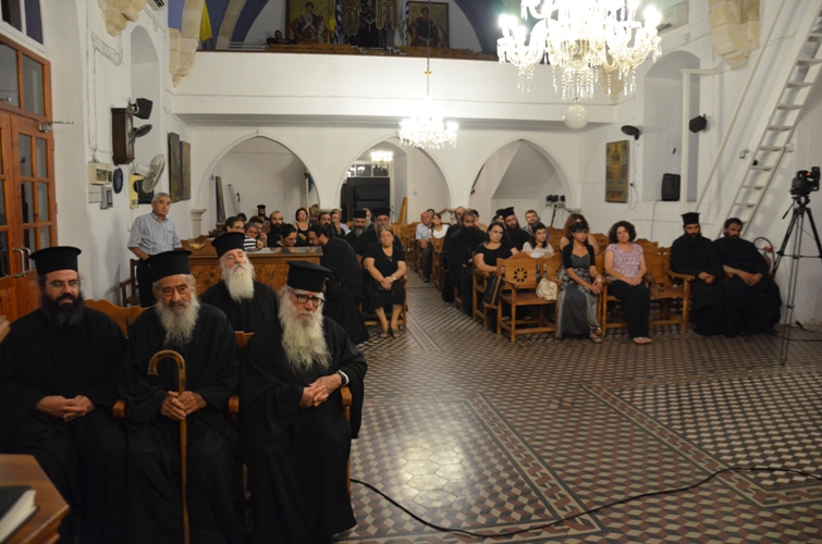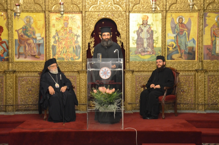 Λαμβάνοντας τον λόγο ο ομιλητής, εξέφρασε την χαρά του που για πρώτη φορά βρίσκεται στην Κύπρο και ευχαρίστησε τον Πανιερώτατο για την τιμητική πρόσκληση που του απηύθυνε προς το πρόσωπο του. Στην ομιλία του ο π. Ναθαναήλ αφού έκανε μια γενική εισαγωγή στο μέγα μυστήριο της Θείας Κοινωνίας το οποίο συντελείτε κάθε φορά που η εκκλησία μας συν-καλεί σε κάθε Θεία Λειτουργία «ως μέλη της Εκκλησίας», αναφέρθηκε στις προϋποθέσεις που πρέπει να διέπουν την σχέση μας αυτή ως «μέλη του σώματος του Χριστού» και στην σημασία που ο καθένας πρέπει να δίνει από της θέσης του, στο μυστήριο αυτό καθ’ αυτό.