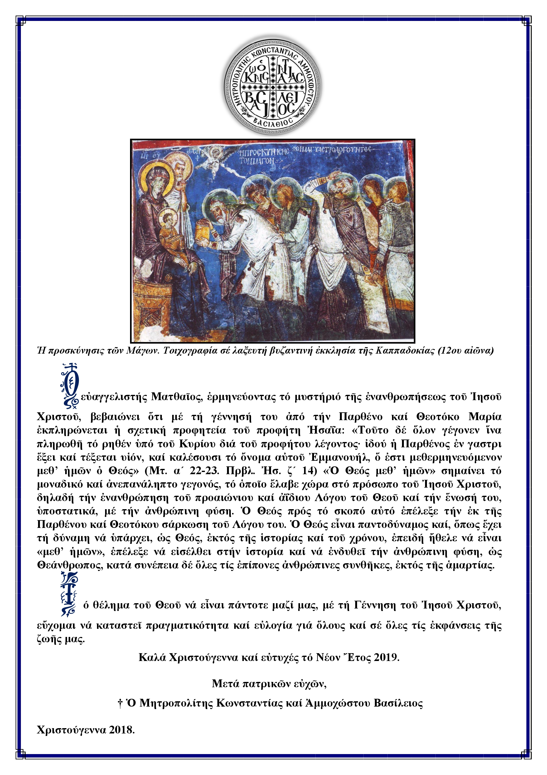 Christmas wishes Metropolitan of Constantia – Ammochostos Vasilios 2018 20 Δεκεμβρίου 2018 Άρθρα-Λόγοι Μητροπολίτη, Επικαιρότητα-Ανακοινώσεις Περισσότερα »