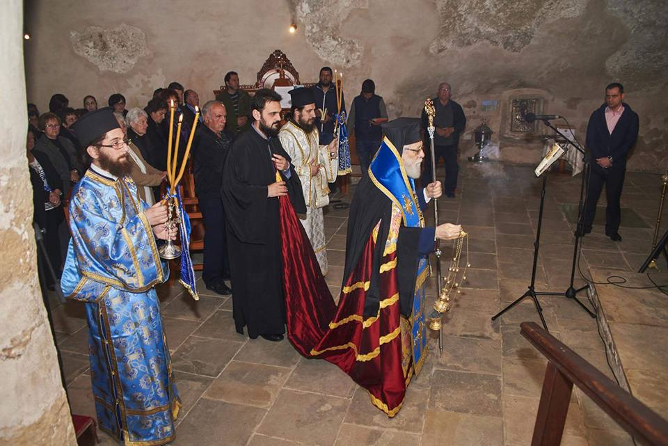 Σε ιδιαίτερα κατανυκτικό κλίμα, τελέστηκε το βράδυ της Παρασκευής, 18 Μαρτίου 2016, η ακολουθία των Χαιρετισμών προς την Υπεραγία Θεοτόκο στην αρχαία Μονή της Αγίας Νάπας. Ο Πανιερώτατος Μητροπολίτης Κωνσταντίας κ. Βασίλειος χοροστάτησε της εσπερινής ακολουθίας και ανέγνωσε την Α’ Στάση των Χαιρετισμών ενώπιον της ιεράς εικόνος της Θεομήτορος. Αρκετοί ήταν οι πιστοί που κατέκλυσαν το καθολικό της ιστορικής μονής, για να συμμετάσχουν στην ακολουθία.