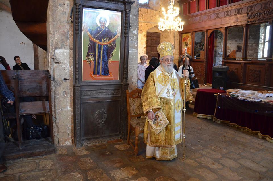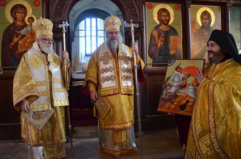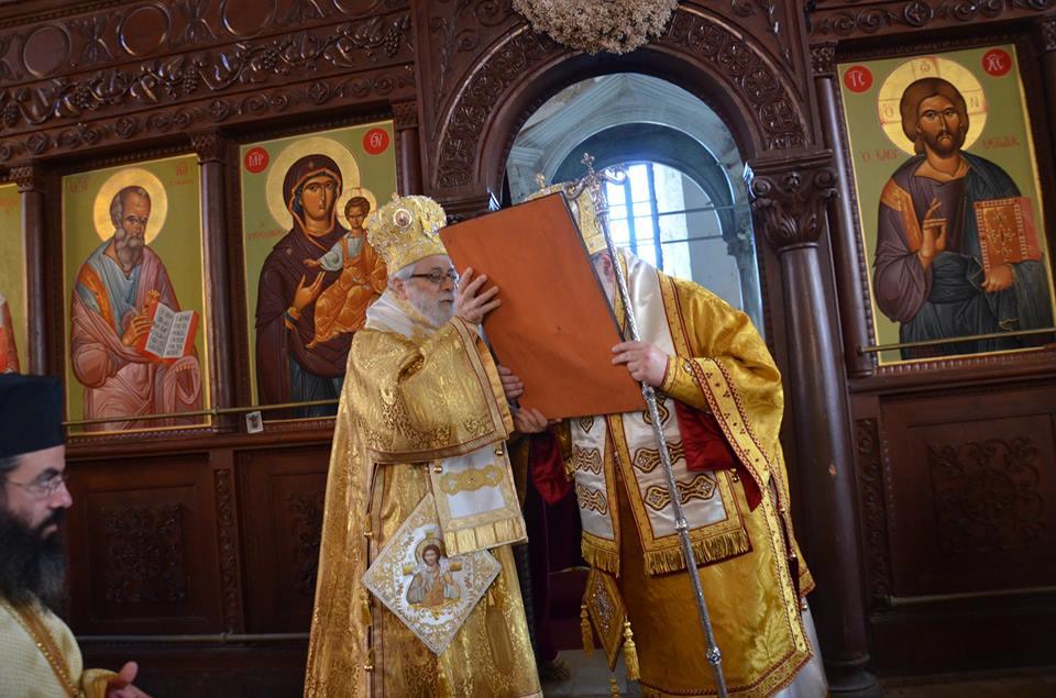 Πριν την απόλυση της Θείας Λειτουργίας, ο επιχώριος Μητροπολίτης κ. Βασίλειος, ευχαρίστησε με τη σειρά του τον Μητροπολίτη Αθανάσιο για την εδώ παρουσία του, προεστώς της ευχαριστιακής σύναξης, στην κατεχόμενη πόλη της Αμμοχώστου, προσφέροντας του μια εικόνα του Αγίου Γεωργίου Εξορινού έφιππου, ως ενθύμιο και ανάμνηση της σημερινής ημέρας.