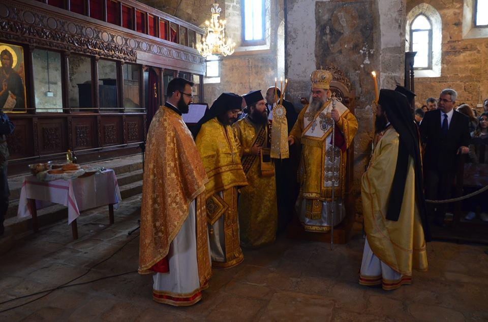 Εκατοντάδες πιστοί, μεταξύ των οποίων βουλευτές της επαρχίας και άλλοι επίσημοι, κατέκλυσαν τον ιστορικό ιερό ναό του Αγίου Γεωργίου Εξορινού στην εντός των τειχών πόλη της Αμμοχώστου, όπου τελέστηκε πανηγυρικό Αρχιερατικό συλλείτουργο προϊσταμένου του Πανιερωτάτου Μητροπολίτου Λεμεσού κ. Αθανασίου και συλλειτουργούντος του Πανιερωτάτου Μητροπολίτη Κωνσταντίας-Αμμοχώστου κ. Βασιλείου. Έλαβαν επίσης μέρος οι πανοσιολογιώτατοι Αρχιμανδρίτες Φιλόθεος Μαχαιριώτης και Αυγουστίνος Κκαράς, πρωτοσύγκελος της Ιεράς Μητροπόλεως, ο πρ. Βαρνάβας Συμεώνοφ και οι Διάκονοι Σπυρίδων Παπαβασιλείου και Επιφάνιος Παπαντωνίου.