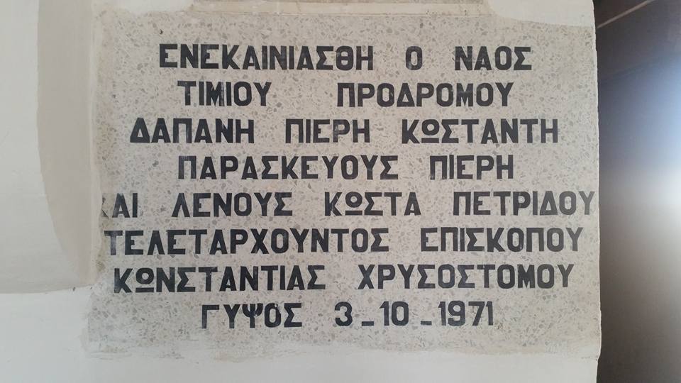 Τέλεστηκε για τρίτη συνεχή χρονιά η Θεία Λειτουργία στον άλλοτε πανηγυρίζοντα (στις 29 Αυγούστου) ιερό ναό Τιμίου Προδρόμου στην κατεχόμενη σήμερα κοινότητα Γύψου, με την ευκαιρία της μνήμης της αποτομής της Τιμίας Κεφαλής του Τιμίου Προδρόμου.