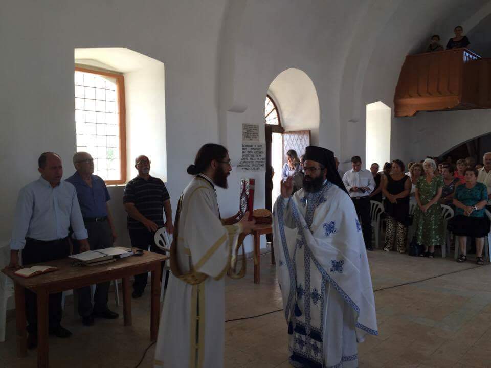 Της ευχαριστιακής σύναξης και του μνημοσύνου των ηρωϊκώς πεσόντων καθώς και των άλλων κεκοιμημένων κατοίκων της κοινότητας, προέστη ο παν/τος Αρχιμ. Αυγουστίνος Κκαράς, συμπαραστατούμενος από τον Διακ. Επιφάνιο Παπαντωνίου. Αναπεύθηκε επίσης δέηση για ανεύρεση των αγνοουμένων κατοίκων της κοινότητας.